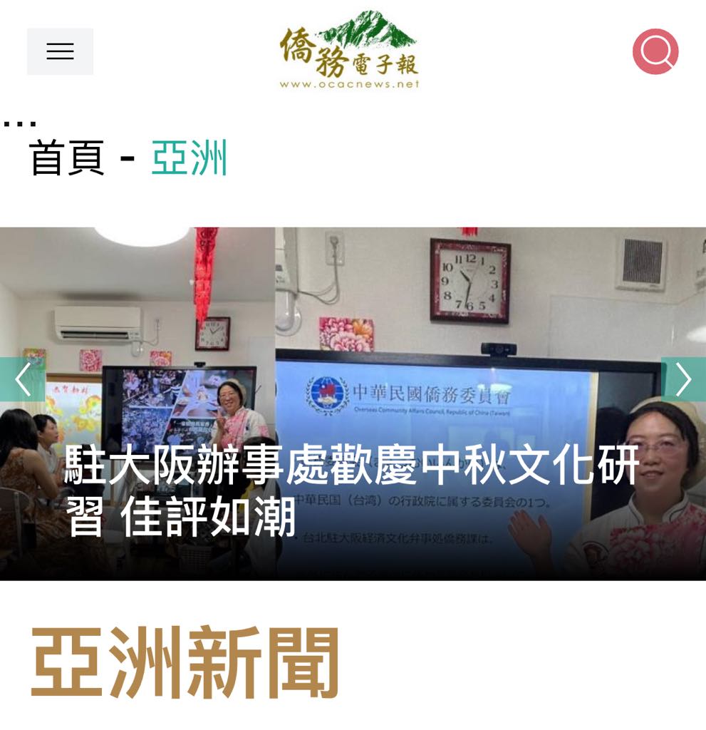 詳しい内容は、こちらです。(僑務電子報)駐大阪辦事處歡慶中秋文化研習 佳評如潮 https://ocacnews.net/article/379171?cid=3