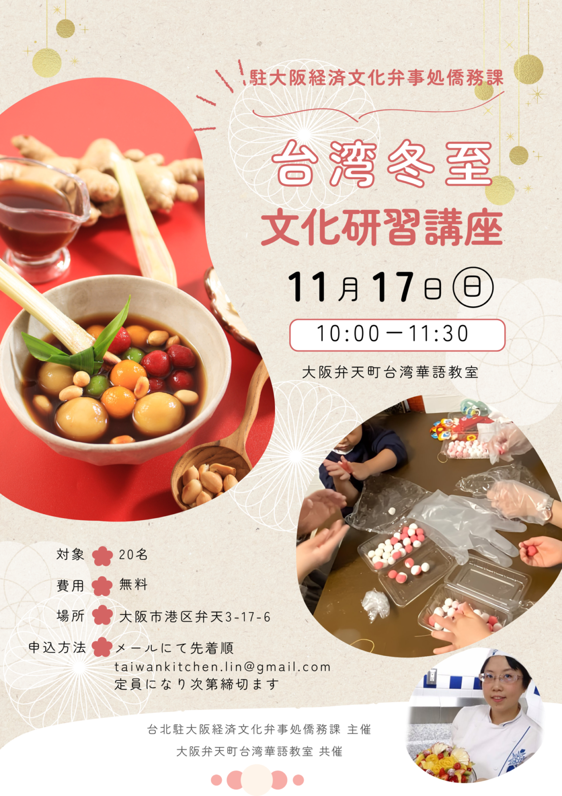 当教室が共催する「台湾の冬至文化研習」という無料イベント。
