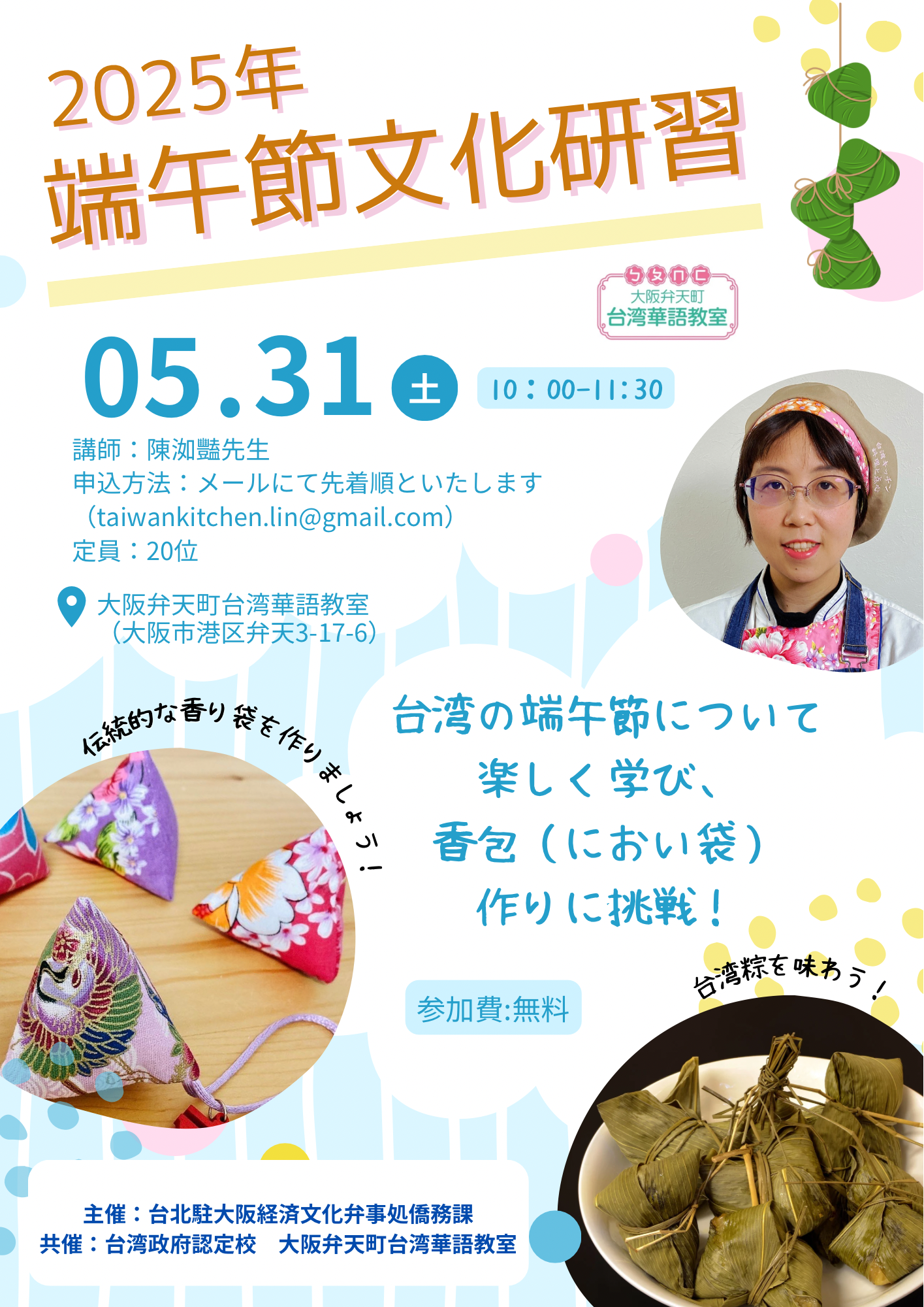 参加費:3,500円 (台湾お菓子や台湾茶付き)