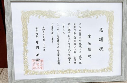 務めている陳です。先日、台湾から嬉しいご報告があります。