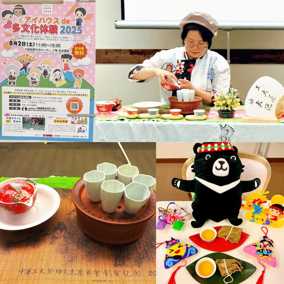 2025年8月2日、大阪国際交流センターで開催された「I-House de 多文化体験2025」において、本教室は台湾文化体験講座を実施しました。講座では、台湾の端午節(たんごせつ)の風習や文化背景を紹介し、参加者と共に香り袋(香包)を手作りする体験を行いました。また、台湾客家文化に伝わる「酸柑茶(さんかんちゃ)」の試飲を通して、台湾の生活文化や季節の過ごし方についてもご紹介しました。