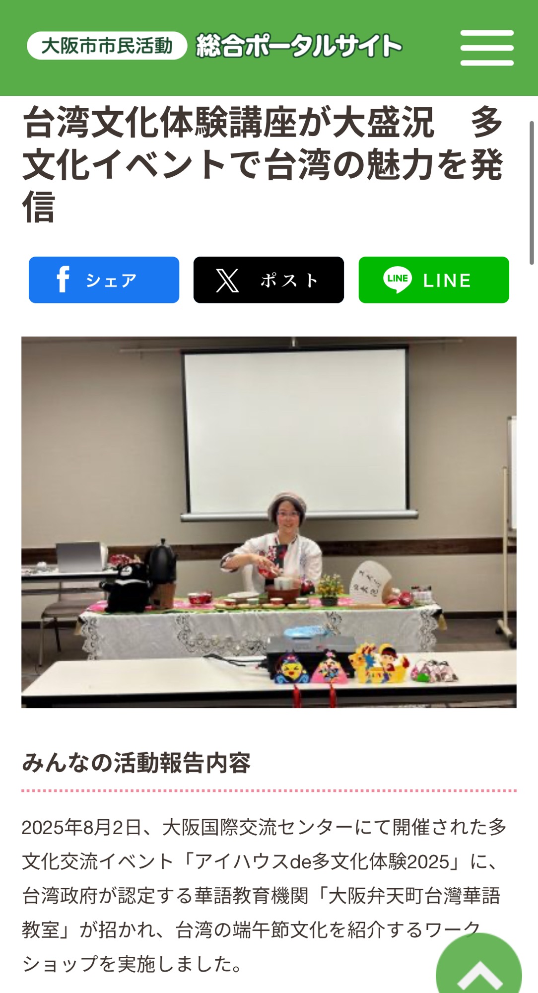 「台湾文化体験講座が大盛況 多文化イベントで台湾の魅力を発信」
