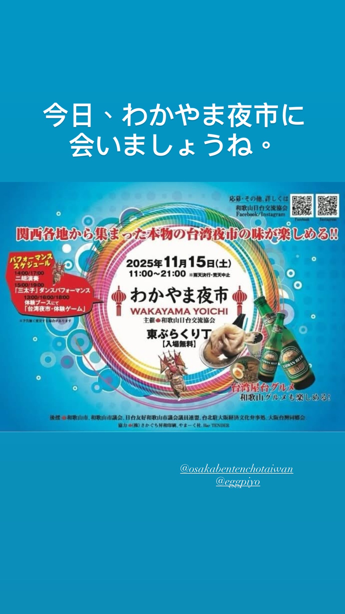 喜歡台灣味的你一定不能錯過!這次能來到和歌山參加夜市活動,我們真的非常開心。