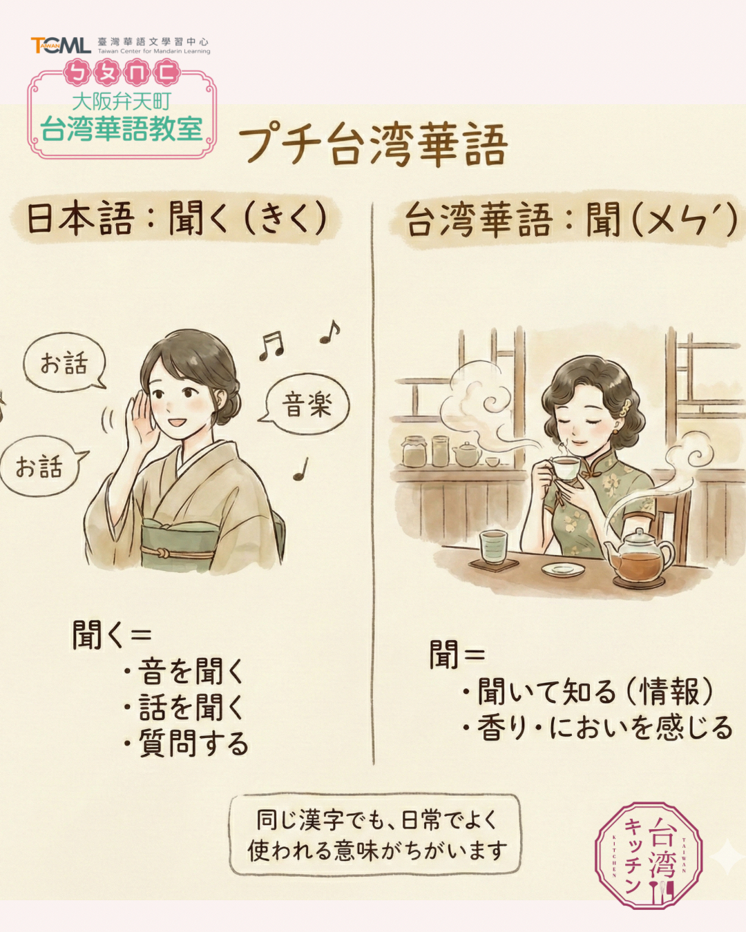 台湾華語の「聞」と日本語の「聞く」台湾華語を勉強している日本の方に、